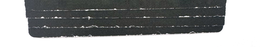 C.摺紙:(如下圖右)尤其以模造類材質、上UV、局部及磨砂後的紙張更為明顯;另外薄紙反覆摺紙的摺數過多時,紙張厚度會因此增加,更容易導致紙張纖維破裂,更是設計者需要注意的問題。